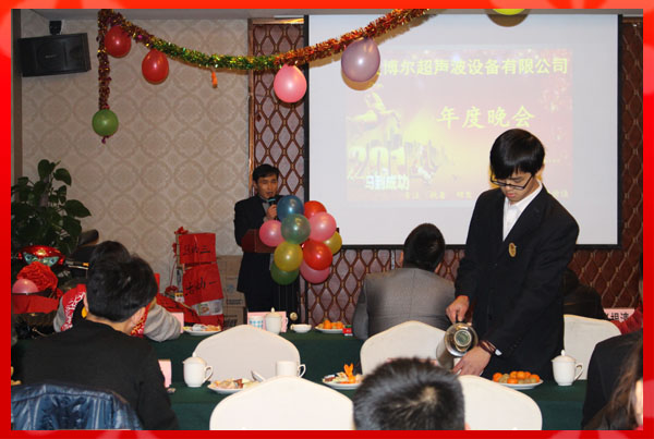 此次年會由公司行政部門精心策劃,聘請了專業(yè)的主持和音控團(tuán)隊(duì)。公司員工精心布置了會場、安排各游戲互動環(huán)節(jié),財(cái)務(wù)部購置了豐盛的獎(jiǎng)品;使得寧波博爾超聲波設(shè)備有限公司2013年年度晚會舉辦的成功、歡樂、祥和、圓滿!